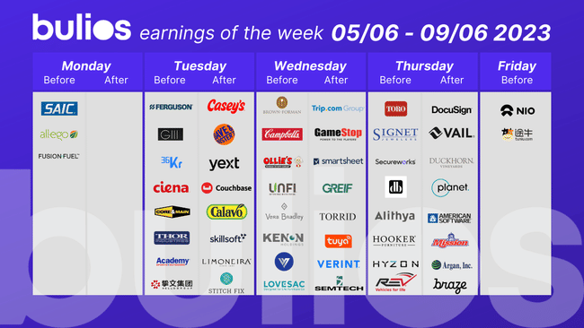 Valószínűleg mindenki nevében beszélhetek, amikor azt mondom, hogy a jövő hét nem az eredmények rovatról fog szólni, amely viszonylag üres. A főbb érdekeltségű cégek közül itt van a GameStop, a Nio és a Casey's.